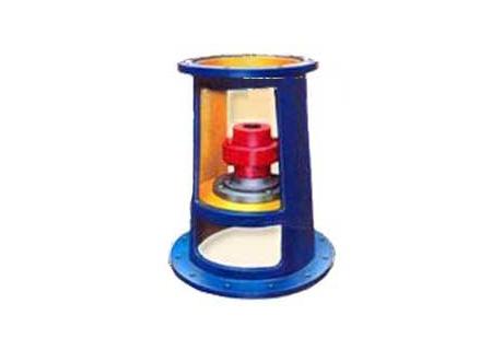 J-B型:用于立式減速機的出軸為Ⅱ型,聯軸器型式為HL型或GT型聯軸器。該機架帶中間支承,適用于攪拌器傳來的軸向較大時使用,當選用HL型聯軸器時,攪拌軸必須在反應器內或填料箱中設有支承若選用夾殼型軸頭,為民避免超定位,建議選用JQW型無懸吊環的夾殼聯軸器。